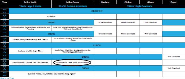 On February 6, 2012, Club Penguin will be attending the iKids Conference in New York! The iKids Conference will be in the Hilton Hotel. The iKids conference will be running 8AM to 5PM, while Club Penguin's " Virtual World Case Study: Club Penguin" will be from 2:45 PM to 3:30 PM. Here is a full schedule of the entire conference: